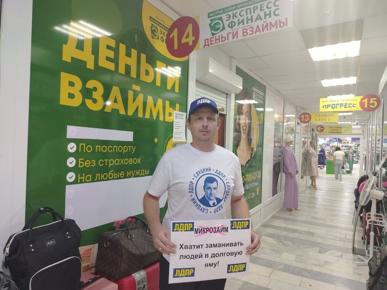 ЛДПР во всех регионах России проводит серию одиночных пикетов возле офисов микрофинансовых организаций под лозунгом «Остановим грабеж бедных под видом микрозаймов», чтобы привлечь внимание к проблеме недобросовестной деятельности МФО, наживающихся за счет граждан, находящихся в сложном финансовом положении.