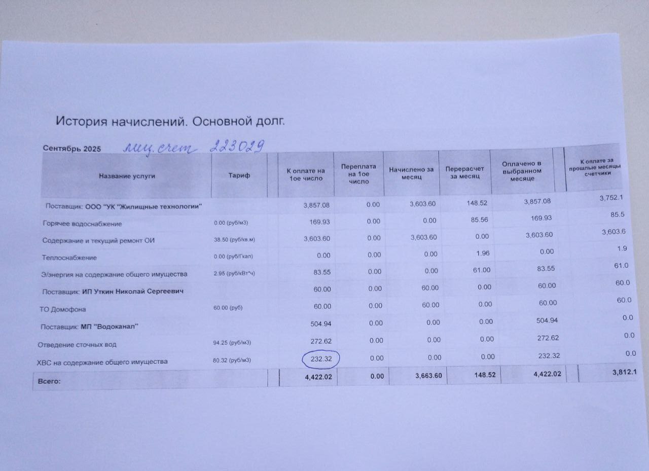 Жительница многоквартирного дома пожаловалась на начисление платы за потребление холодной воды на содержание общедомового имущества. По словам заявительницы, ежемесячно жителям дома выставляются счета за 2–3 кубометра холодной воды на каждую квартиру именно по строке «содержание общедомового имущества МКД». При этом в доме 45 квартир, и общий объём начислений становится соизмерим с железнодорожной цистерной воды и более.