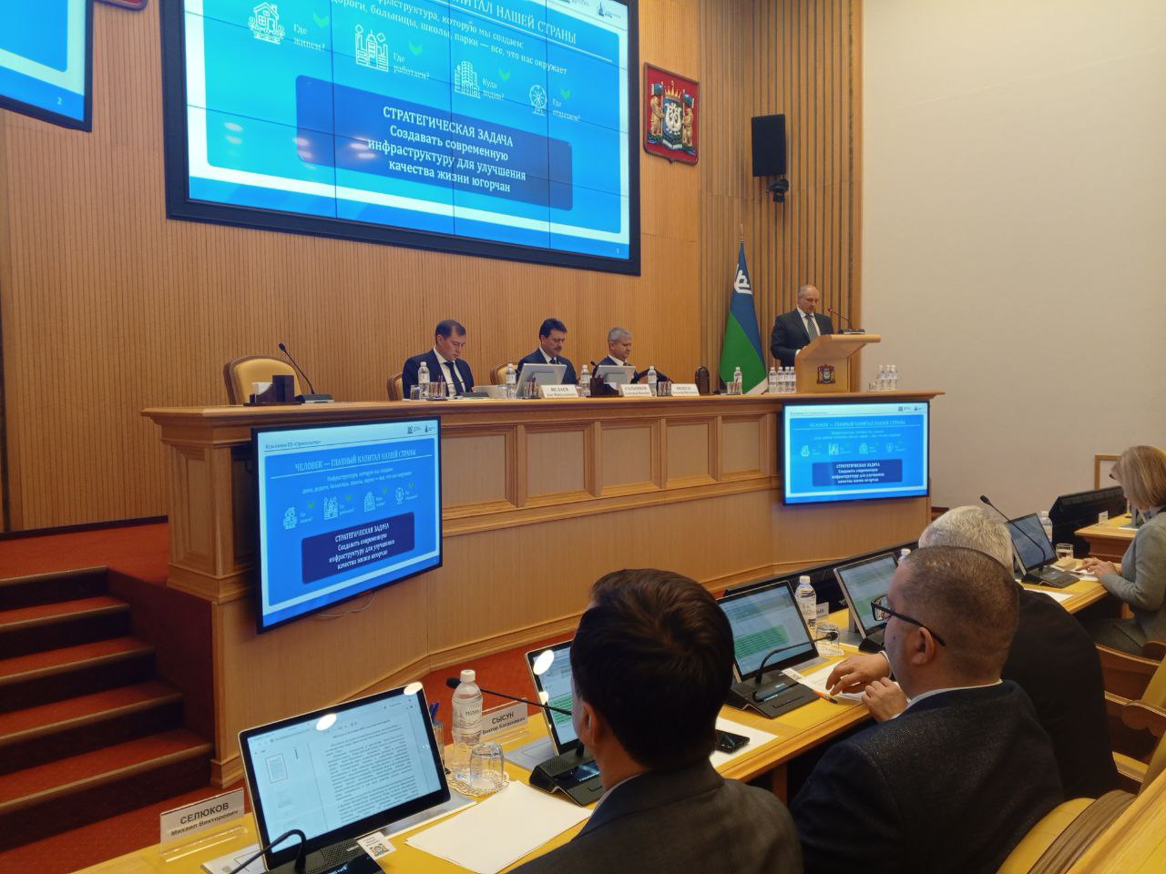 Сегодня, 26 ноября 2025 года, депутат Думы Ханты-Мансийского автономного округа – Югры от фракции ЛДПР Виктор Сысун принял участие в «правительственном часе» на тему: итоги реализации мероприятий окружной госпрограммы «Строительство» за 2024 год и отчетный период 2025 года.