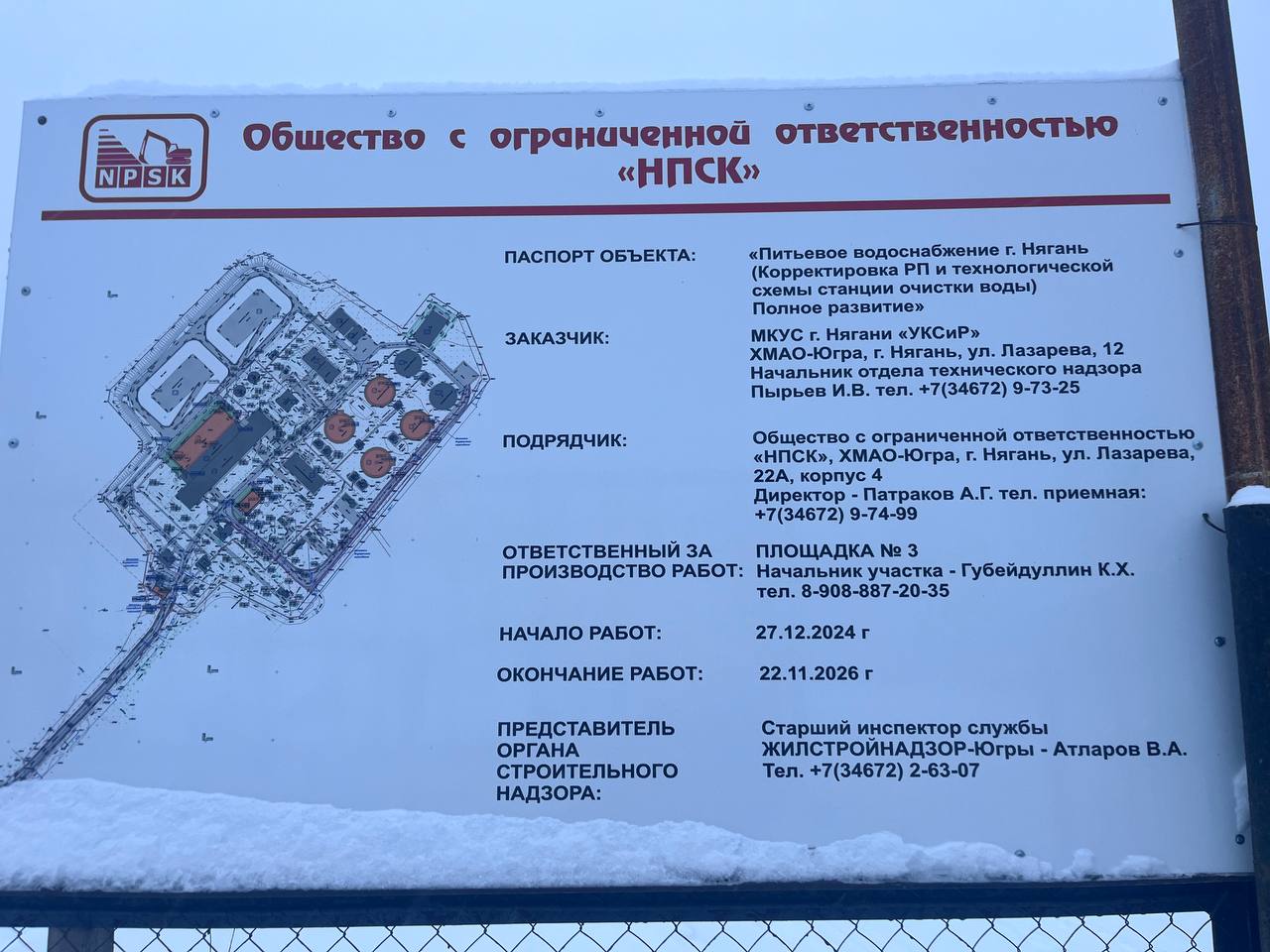 Депутат ЛДПР Думы города Нягани Александр Архипов осмотрел строительную площадку: "Полным ходом идет строительство второй очереди станции водоочистки. Новые мощности позволят удалять из питьевой воды ионы марганца, обеспечивая горожан водой высшего качества. Подрядчик установил четыре резервуара объёмом по 5 000 кубометров, ведёт строительство фильтровального цеха, насосной станции и других объектов. Планируется, что ввод объекта в эксплуатацию произойдёт через год - в ноябре – декабре 2026 года, при этом подрядчик уже работает с опережением графика. Общая мощность станции составит 1 250 кубометров в час или 30 000 кубометров в сутки. Теперь будем периодически осуществлять депутатский контроль за строительством и вводом в эксплуатацию ВОС."