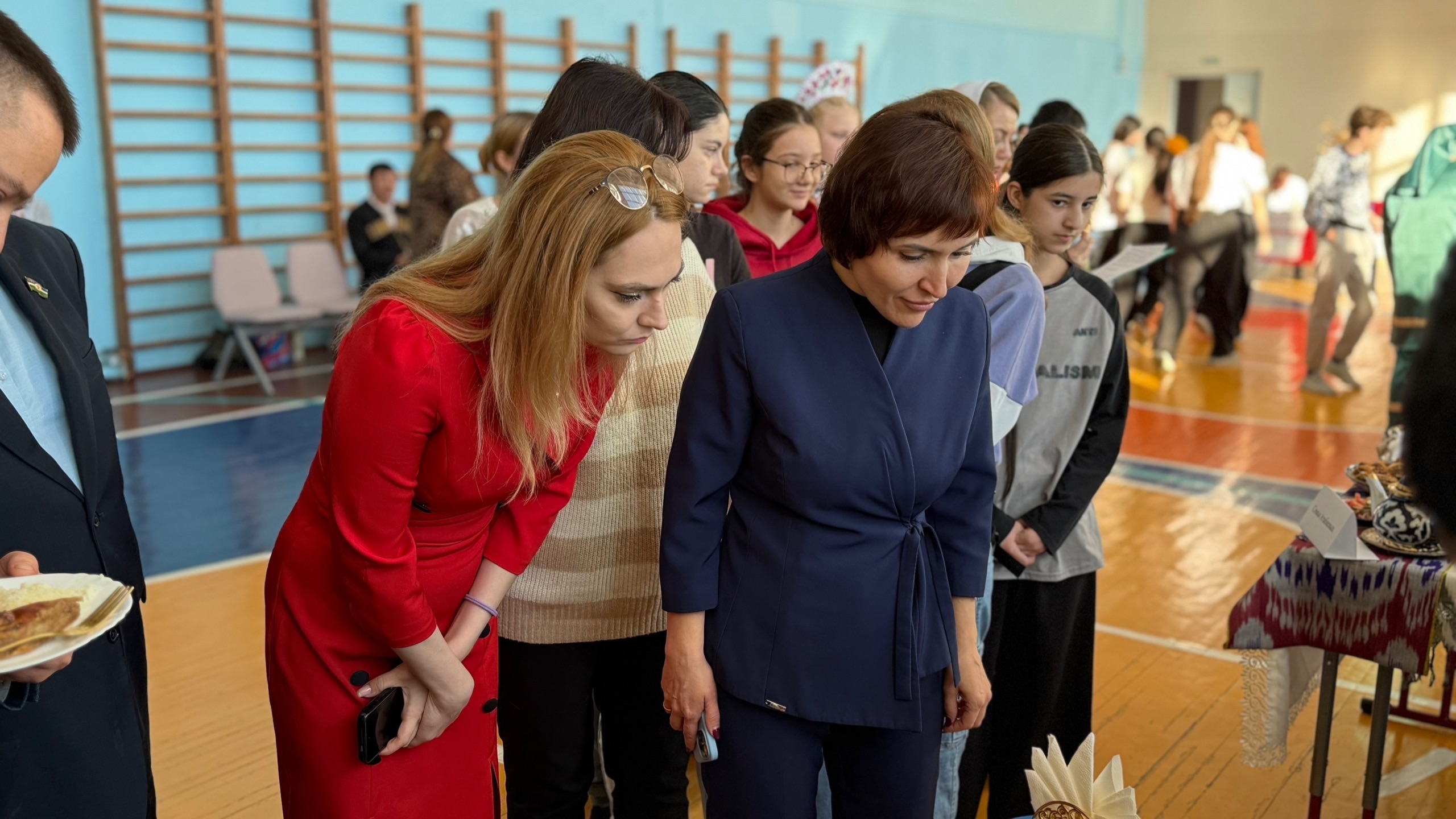 Кулинарные блюда участников этно-ярмарки в поселковой школе оценила представитель ЛДПР в Сургутском районе