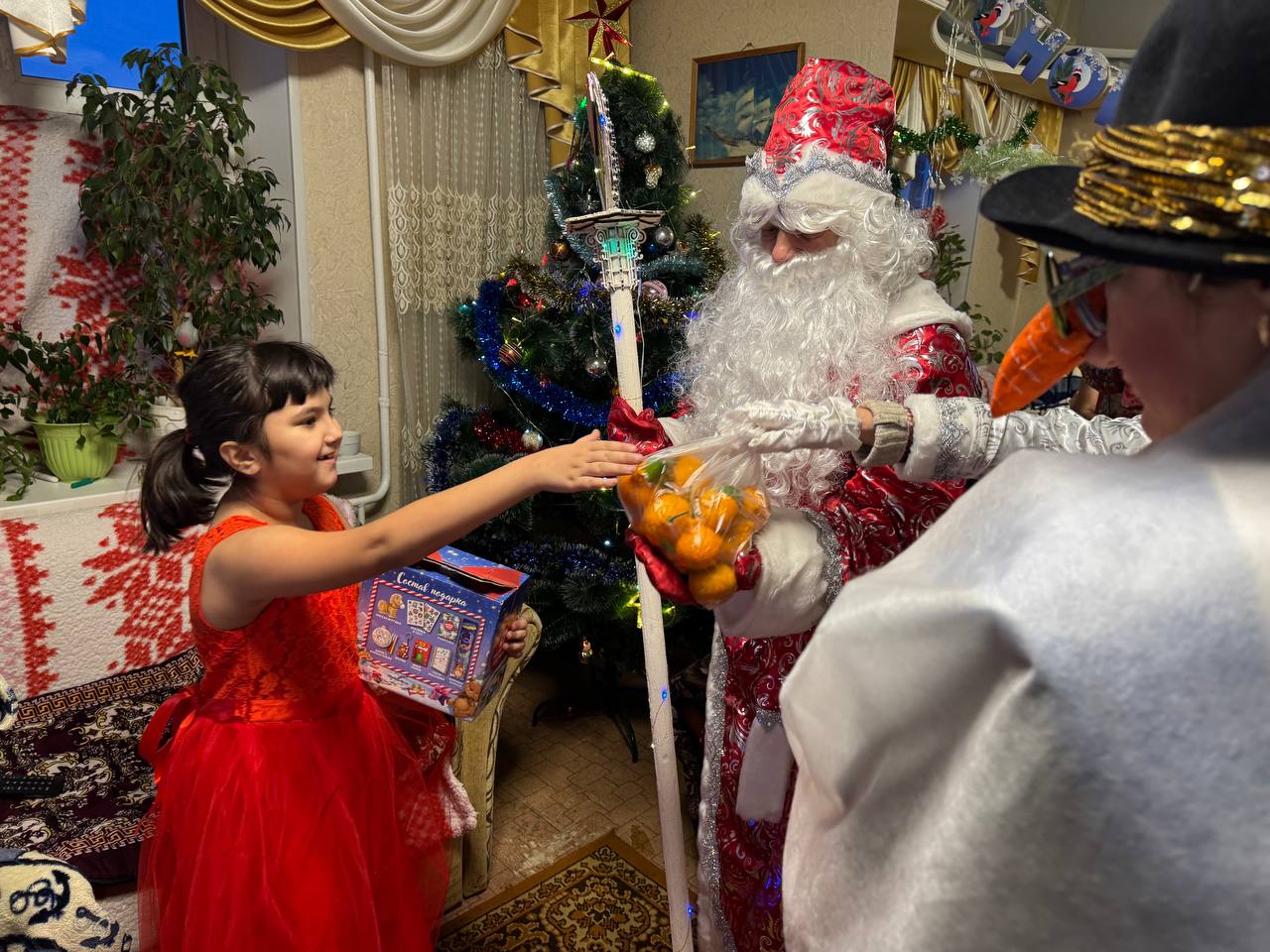 Новогоднее настроение, тёплые слова и подарки получили не только дети, но и пожилые люди, а также те, кто особенно нуждается во внимании и поддержке. Гостям вручили продуктовые наборы и новогодние сюрпризы, чтобы они почувствовали: о них помнят и заботятся.