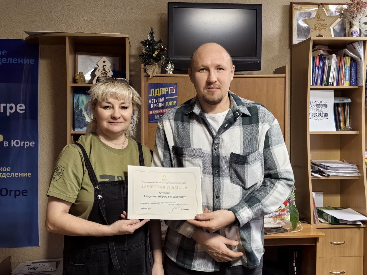 Особым моментом встречи стало вручение почётных грамот от лидера ЛДПР Леонида Эдуардовича Слуцкого. Награды получили самые активные и неравнодушные — те, кто не боится брать на себя ответственность, выходить к людям, помогать в сложных ситуациях, добиваться решений через приёмы, запросы, общественные кампании. Для кого партийный билет — не галочка в биографии, а часть жизни.