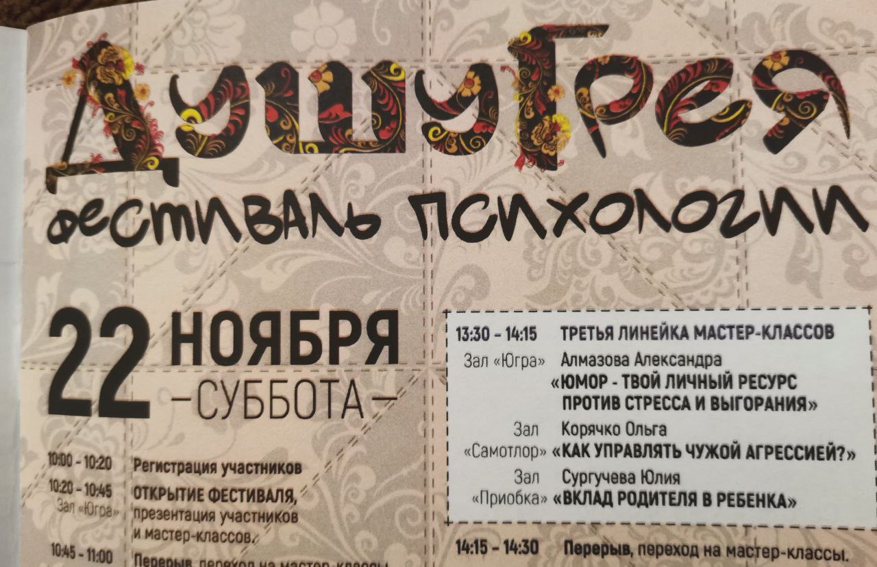 В День психолога в центре «Защитника Отечества» в столице Югры состоялся масштабный психологический десант и фестиваль психологии «ДушуГрея». Мероприятие, направленное на поддержку ментального здоровья и профилактику эмоционального выгорания, объединило ведущих специалистов-психологов региона.