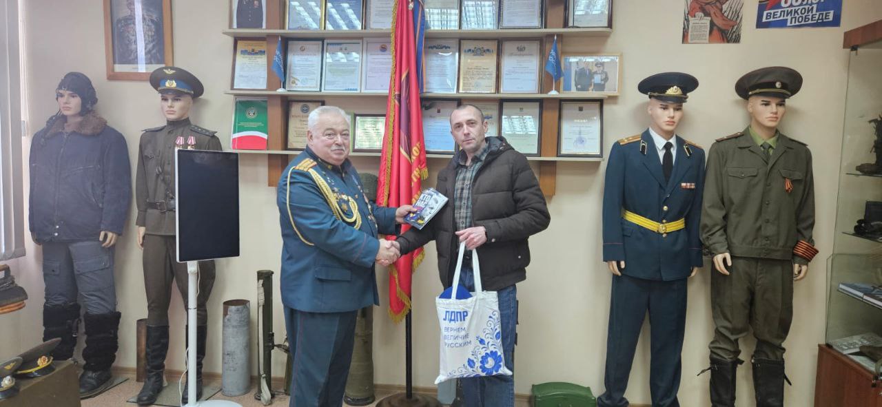 "Мы вручили Александру Ивановичу памятные подарки с символикой ЛДПР и брошюру «Кто нас защитит», отметив значимость воинских традиций и вклад ветеранов в развитие общественных инициатив. Проговорили о том, что военнослужащие войск радиационной, химической и биологической защиты вносят существенный вклад в укрепление обороноспособности нашего государства. По итогам беседы договорились о дальнейшем сотрудничестве и реализации совместных проектов, направленных на популяризацию военной истории и поддержку молодёжных просветительских программ", - рассказал координатор местного отделения Будяков.