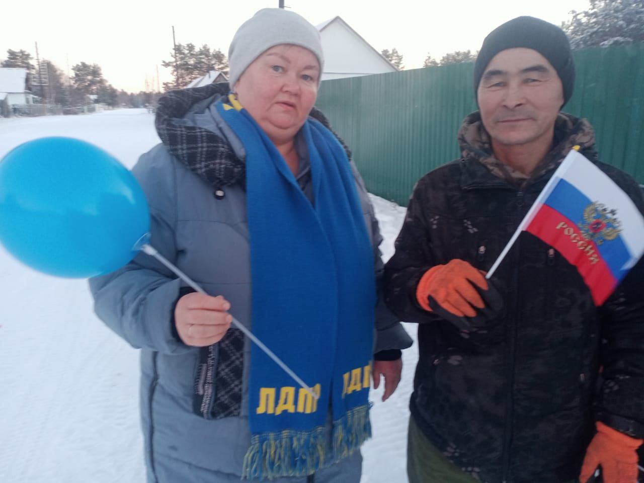 Координатор Нижневартовского районного отделения партии Максим Попов совместно с активистом партии Еленой Пыжовой поздравили с праздником жителей пгт. Излучинск.